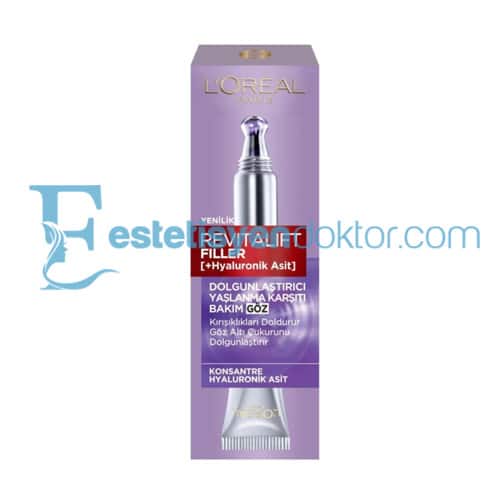 L’Oréal Paris Revitalift Filler Dolgunlaştırıcı Yaşlanma Karşıtı Göz Kremi, konsantre hyaluronik asit içeren formülü ile göz çevresindeki kırışıklıkları doldurmaya, göz altı çukurunun dolgunlaşmasına yardımcı oluyor.